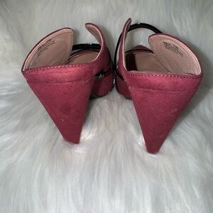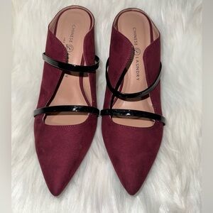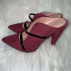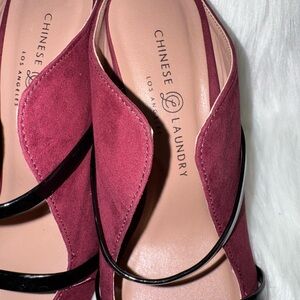 Step into sophistication with these Chinese Laundry mules, featuring a striking red and black color combination. The double strap design adds a touch of elegance, while the pointed toe and suede-like finish offer a chic and modern look. Perfect for both professional and casual settings, these mules are a versatile addition to any wardrobe.