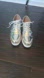 Sleek silver loafers with lace-up design. Comfortable and chic. Could use a wipe down but in good condition.