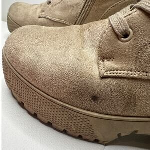 Chinese Laundry Size 8 Beige Tan Faux Suede Lace-Up Fall Moto Military Bootie