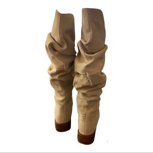 Beautiful knee length (16”) slouch boots with pointed toe has a smudge as shown in photo