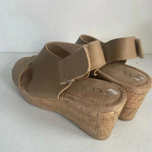 Chinese Laundry Tan Vegan Leather Cork Wedge Sandals Size 9 EUC!