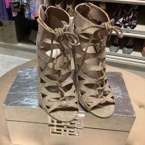 Like new…worn once…4.5 inch heel. Zip back for easy on and off. Pretty lace up front