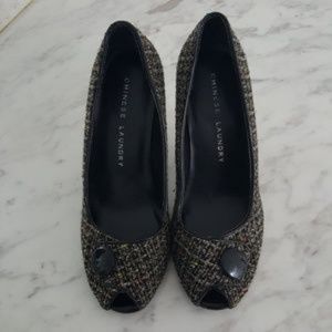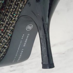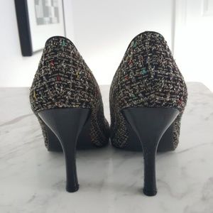 Chinese Laundry tweed heels speckled with grey, black, green, yellow, and red accents. Very cute for the fall/winter season.
