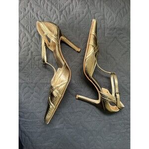 Chinese Laundry VEDA Pointed Toe T-Strap Bronze Gold Snakeskin Pumps SZ 9M Glam
