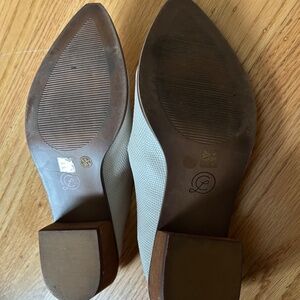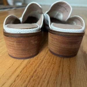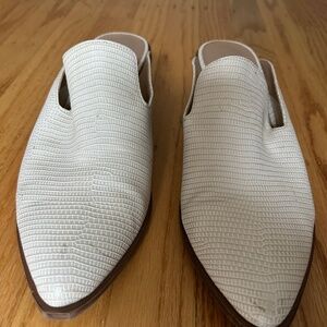 White/cream faux-snakeskin leather slip-on mule known as the "Marnie Loafer Mule" from Chinese Laundry