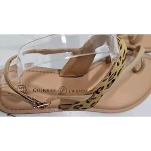 Chinese Laundry ~Woman Size 8.5~ Beige/Animal Print Sandals Leather Flat.