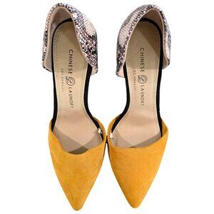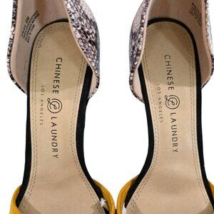 Chinese Laundry Womens 8M Pointed Toe DOrsay Heels Snakeskin & Mustard Yellow
