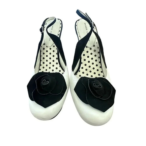 Chinese Laundry Women's Black White Slingback Carrie High Heels Shoes Size 10