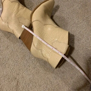 Pull on pointed toe western inspired ankle boot with chunky stacked heel and tonal stitching