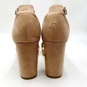 Chinese Laundry Womens Dark Nude Faux Vegan Suede Block Heels Sandals Shoes 7.5