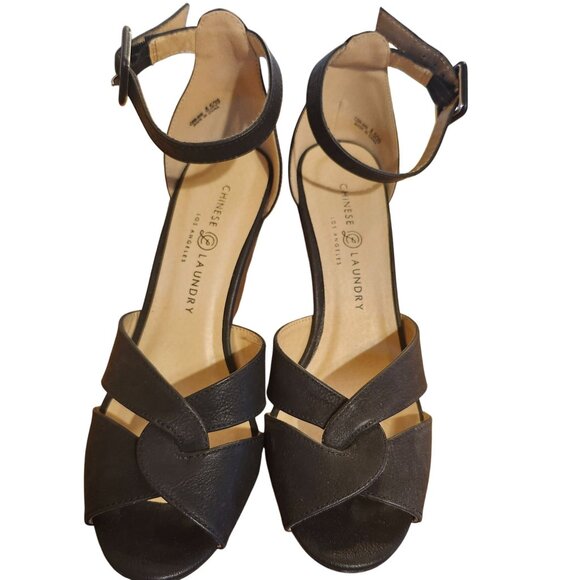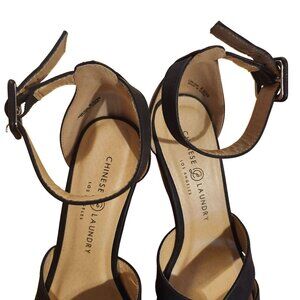 Chinese Laundry Women’s Size 8.5 Calais Black Wedge Sandals Ankle Strap Heels