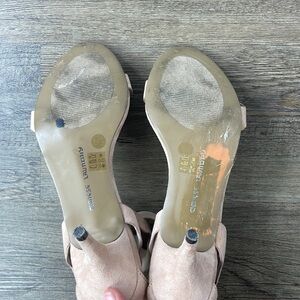 Chinese Laundry Women’s Tan Suede Zig Zag Ankle Strap Open Toe Heel, size 6.5. In great used conditon, see pictures for wear. Soles are a little worn but here’s themselves are in excellent condition.