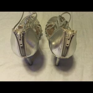 Chinese Laundry silver strappy heeled sandal, size 8.5, worn once, zipped back
