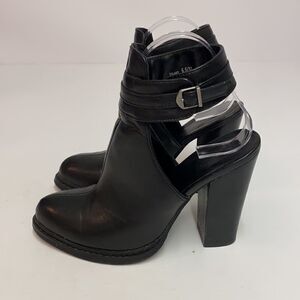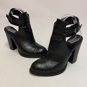 Super cute open-heel booties featuring a chunky heel and an adjustable buckled ankle strap. The Galaxy looks amazing paired with dresses and denim. By Chinese Laundry. Manmade