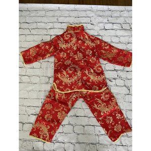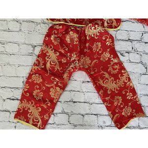 Chinese New Year Baby Boy Girl Shirt Pants Set Red Satin Outfit Size M Kids NWOT