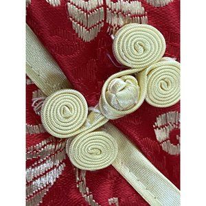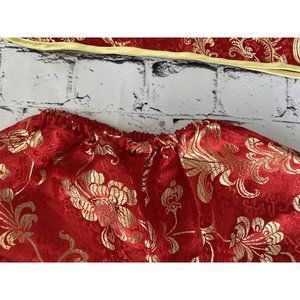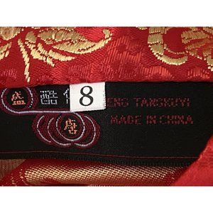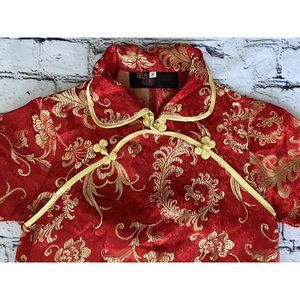 Note**** Size Tag says 8 Please see measurements for Sizing. Chinese New Year Baby Girl or Boy Shirt and Pants Medium Size ( My estimate) Red Gold Brocade Satin Outfit. Purchased on a trip to China. Jacket measures 14” armpit to armpit. Length: 18". Pants with elastic waist: 7"-12" and 20” long. Never Worn. New without Tags condition!!!!