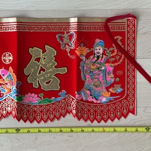One Diamond shaped fabric decoration that has the Chinese Character for GOOD LUCK inscribed inside.