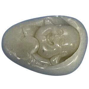 Chinese Polished Nephrite Jade Carved Smiling Buddha 1 1/2” Tall Pendant
