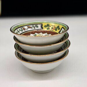Chinese Porcelain Mini Sauce Bowls Floral Butterfly Heart Design Gold Trim 2"