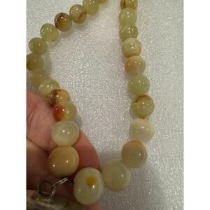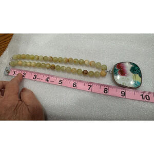 Chinese Porcelain Shard Sterling Square Pendant 20" Beaded Necklace Green Onyx