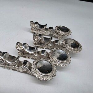 Chinese Porcelain Soup Spoons With Silverplated Dragon Rests Floral Heart Set