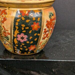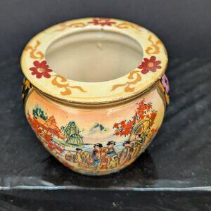 Chinese Satsuma Style Hand Painted Porcelain Pot Vase Planter 2 3/4 Inch