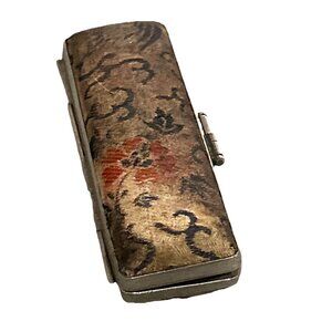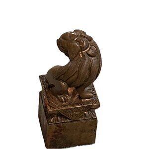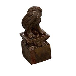 Here we have an extremely rare 19th century Chinese seal box with bronze Foo Dog stamp. Comes with a fitted case. Has red wax. Carrying case looks to be made of silk material with metal kiss lock. Case measures 2.75" in length x 1.25" including lock wide. Foo dog stamp is made from bronze. Bronze stamp measures 1 3/8" tall x .5" wide. Has personalized stamp on bottom. Bronze figure is in very good condition for its age. Case does have some condition issues. Such as discoloration and metal has some blemishes. Please see photos to help judge condition for yourself.