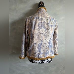 Chinese Style Womens Faux Fur Trim Embroidered Jacket Stand Collar Knot Closure
