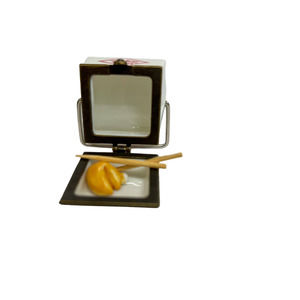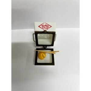 Chinese Takeout Box PHB Porcelain Hinged Trinket Box Midwest of Cannon Falls. In great condition. Doesn't come in original box but comes with both smaller trinkets including two chopsticks and a porcelain fortune cookie. This is the cutest trinket!