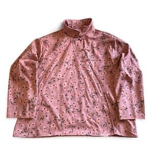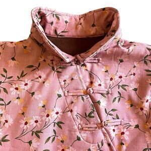 Chinese Tang Suit Jacket Womens Sz 4XL Plus Pink Floral Fleece Lined Cottagecore
