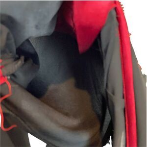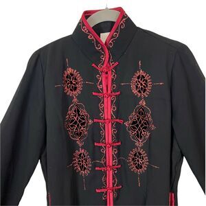 Chinese Tang Suit Top Binh Thuan Womens Black Red Long Sleeve Embroidered sz S/M