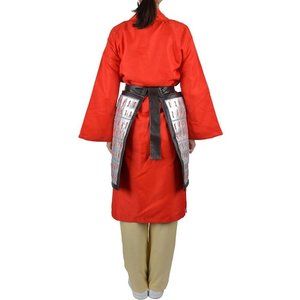 OFFICIAL MULAN COSTUMES WARRIOR OUTFIT - This costume ensemble features a red tunic and grey pants with faux printed armor to make this true to the film