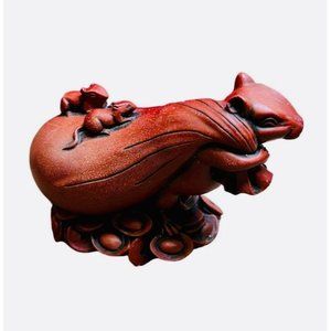 Zodiac Rat Carved Figurine dragging Sack of Wealth Amulet Feng Shui 6 inches long Vintage