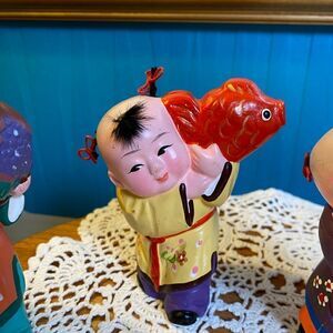 Chinese clay Art New Year set of 4 figurines good luck with vegetables collected
