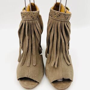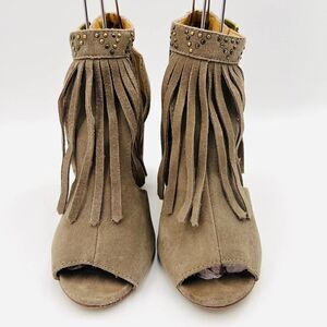 Chinese Laundry Women's Studded Fringe Suede Booties in Taupe Shoes Size 8.5