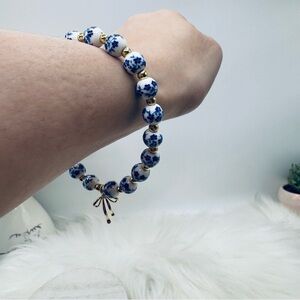 Chinese-Style Ceramic Floral Beaded Stretch Bracelet, 8mm ceramic beads