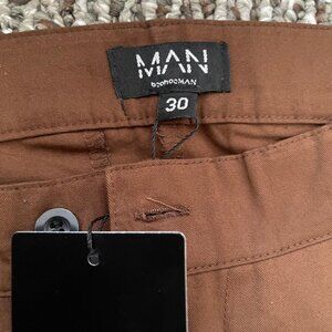 Step up your streetwear game with these Boohooman Fixed Waist Relaxed Skull Print Chino Pants. Designed for effortless style and all-day comfort, these brown chinos feature bold white skull graphics printed throughout, giving them a standout, edgy look. The relaxed fit ensures easy movement, while the fixed waist with button closure provides a secure and structured fit. Crafted from durable cotton-blend fabric, these pants are perfect for casual wear, skate fashion, or adding an alternative vibe to any outfit.