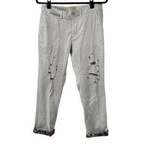 Chino by Anthropologie Light Wash Floral Contrast Distressed Jeans. Size 28P with measurements in the pictures. Gently used condition with no rips or stains.