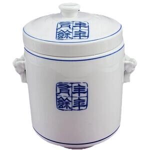 Chinoiserie Blue White Koi Fish Porcelain Canister Cookie Coffee Tea Container