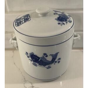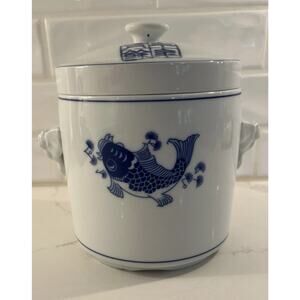 Blue White Koi Fish Porcelain Cookie/Coffee/Tea Storage Caddy~~