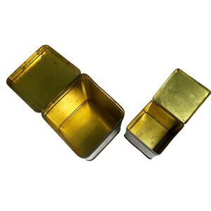 - Smaller tin: approx. 3½ inches tall, 2¾ inches square