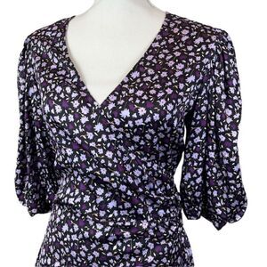 Chinti & Parker Gabriel Floral Mini Dress Black and Purple Wrap Look Size 6