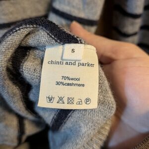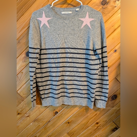 Chinti & Parker Gray Knit with Pink Star Wool & Cashmere Size Small