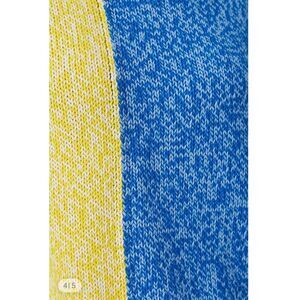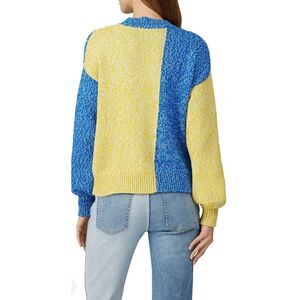 Yellow and blue color blocked knit (100% Cotton). Sweater. Long sleeves. Crew neckline. 22" from shoulder to hemline. Imported.