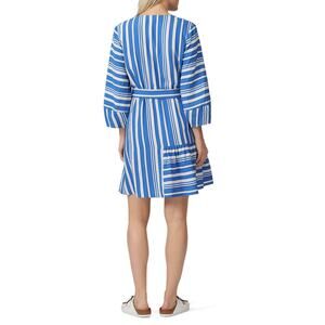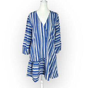 Chinti & Parker Striped Parasol Dress Women's 6 Blue White Wrap 3/4 Sleeves