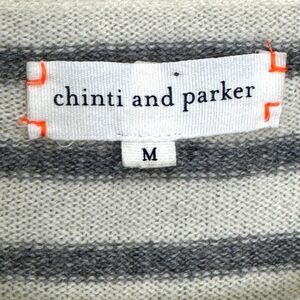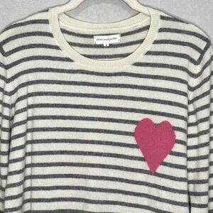 Chinti and Parker Sweater Womens Medium Gray White Stripe 100% Cashmere Heart