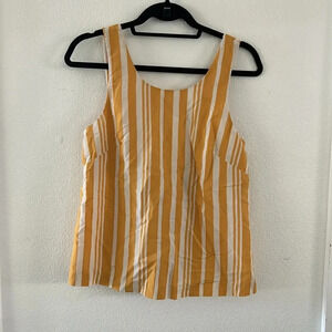 Yellow striped crepe (85% Viscose, 15% Polyamide). Top. Sleeveless. Scoop neckline. 25" from shoulder to hemline. Imported.