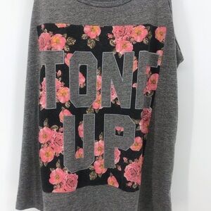 Chin-up Tone Up Gray and Pink Floral Tank Top Size XS
