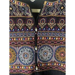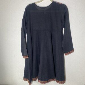 Chinyere Women’s Black Embroidered Knee Length Midi Dress Size Medium Aztec