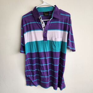 29" long 21" pit to pit. This Chip Beck polo shirt is a stylish addition to any wardrobe. Featuring a trendy striped pattern, short sleeves, and a collared neckline, it is perfect for a day at the beach, a round of golf, or a leisurely walk. With pockets for added convenience, this shirt is made from a blend of polyester and cotton for a comfortable fit. The vintage style and regular fit make it a versatile piece that can be dressed up or down. The shirt is available in size L and comes from Korea, Republic of.